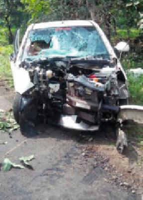 खंडाळा घाटातील घटना : माहूर दर्शनासाठी जाणाऱ्यांवर काळाचा घाला पुसद : नवरात्रोत्सवानिमित्त माहूर येथे रेणुका मातेच्या दर्शनासाठी जाणाऱ्या भाविकांची इंडिका कार झाडावर आदळून झालेल्या अपघातात दोन जण ठार झाले. तर तीन जण गंभीर जखमी झाले. हा अपघात पुसद-वाशिम मार्गावरील खंडाळा घाटात रविवारी दुपारी १२ वाजताच्या सुमारास घडला.कृष्णा भारतिलक (२१), मनोहर बराटे (२१) दोघे रा. देऊळगाव ता. परतूर जि. अकोला असे मृतांची नावे आहे. तर ज्ञानेश्वर बराटे (४५), हरिभाऊ गावंडे (४५), चालक शेख जब्बार (३५) रा. देऊळगाव अशी जखमींची नावे आहेत. ही सर्व मंडळी माहूर येथे दर्शनासाठी इंडिका कारने रविवारी जात होती. खंडाळा घाटात चालकाचे नियंत्रण गेल्याने कार एका झाडावर जाऊन आदळली. त्यात कृष्णा आणि मनोहर गंभीर जखमी होऊन ठार झाले. तर तीन जखमींना पुसदच्या एका खासगी रुग्णालयात दाखल करण्यात आले. अपघात एवढा भीषण होता की, इंडिका कारचा समोरील भाग पूर्णत: चुराडा झाला होता. या मार्गावरून जाणाऱ्या इतर प्रवाशांनी जखमींना रुग्णालयात दाखल करण्यास मदत केली. पोलिसांनी या अपघाताची नोंद घेतली आहे. (तालुका प्रतिनिधी)