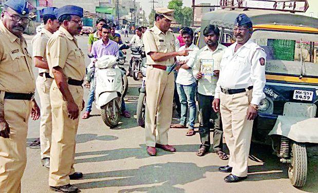 पोलिसांनी नववर्षदिनी ठिकठिकाणी वाहतुकदारांचे स्वागत केले. मार्गातील विविध वाहने आणि चौकाचौकात थांबलेल्या वाहनांच्या चालकांना ठाणेदार अनिल किनगे यांच्या नेतृत्वात शुभेच्छापत्र देण्यात आले.